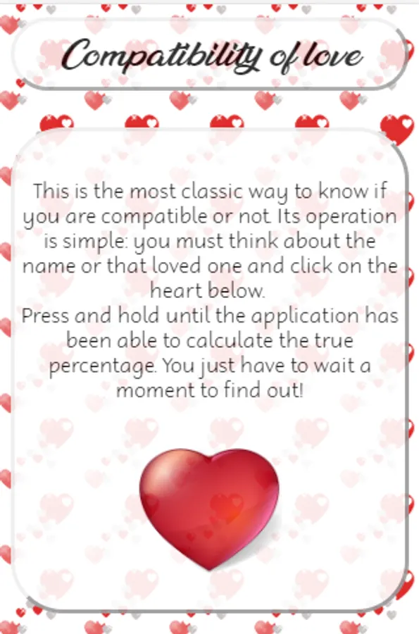 Discover with this application if that person you love would be reciprocated or simply know if there are possibilities of something special.