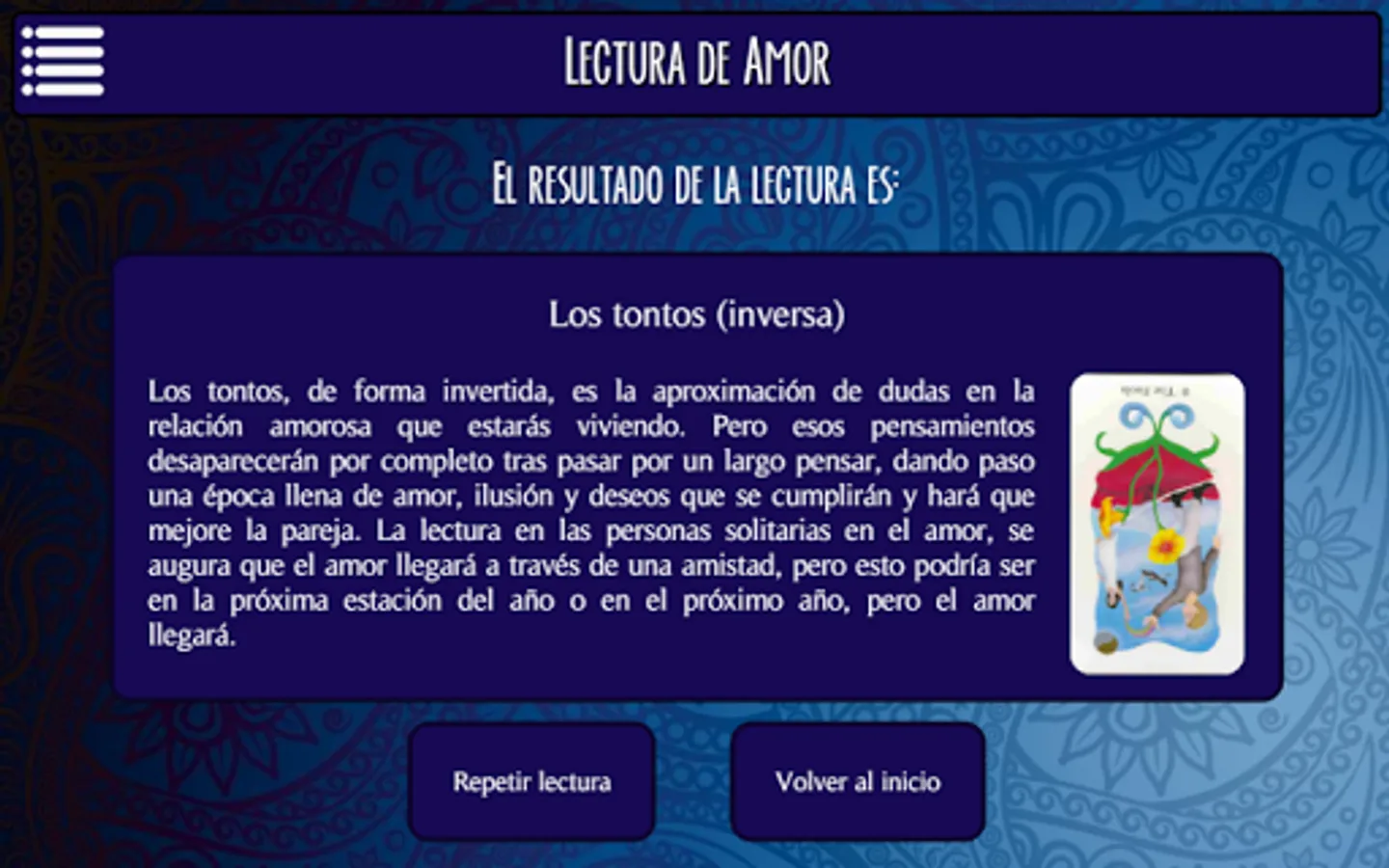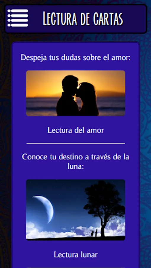 - Love reading: perform readings on the powerful feelings of love as knowing if it is an unrequited love, know how to find love or even know what will happen to the relationship in the future.