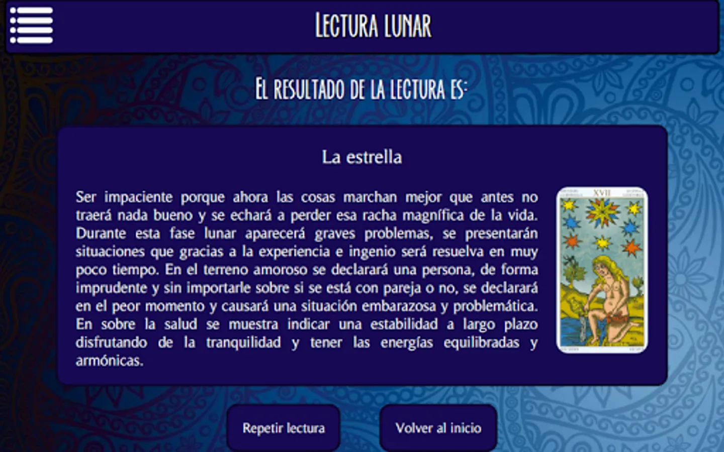 - Lunar Reading: the phases of the moon is indicative of new beginnings, make reading can reach and discover how it will affect the day.