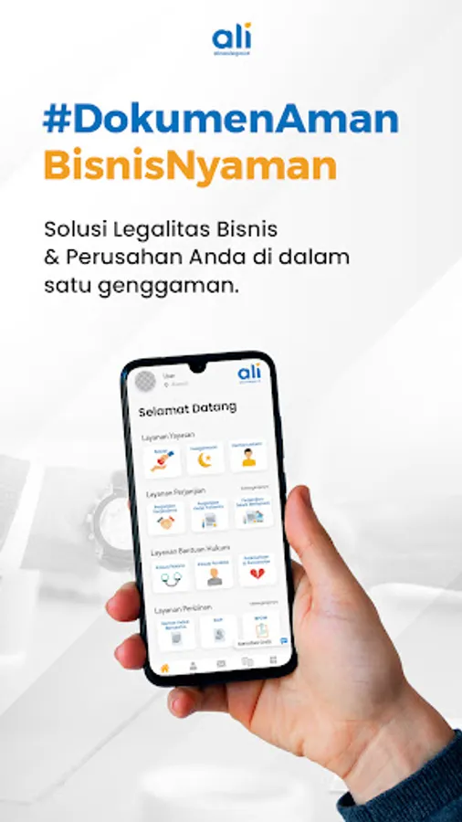 ALI Apps is an application from Accesslegal.id that aims to make it easier for you to start a business safely.