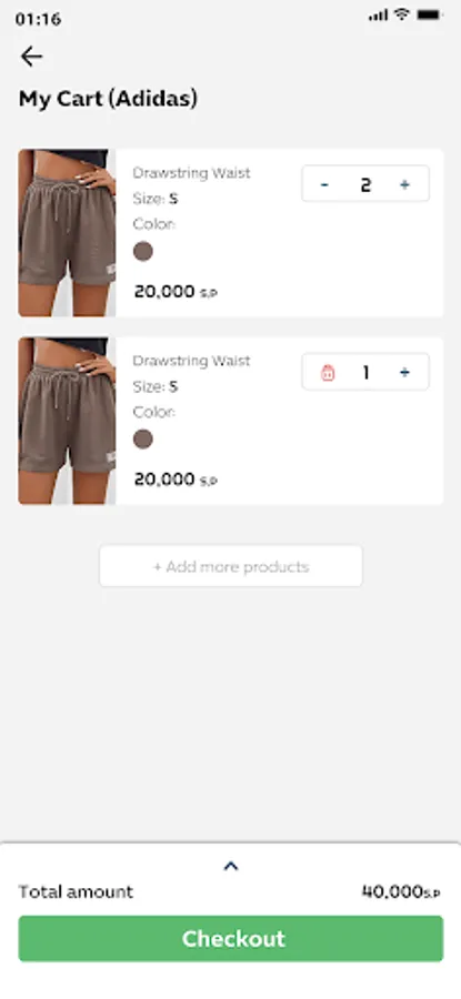 Ordering and purchasing products from the stores available within the application, and specifying the time and place to receive the order.