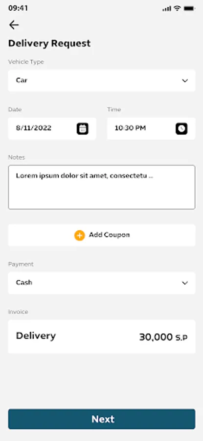 Request the service of transferring orders of all kinds from one place to another by filling in the order details and specifying the place to receive and deliver the order.