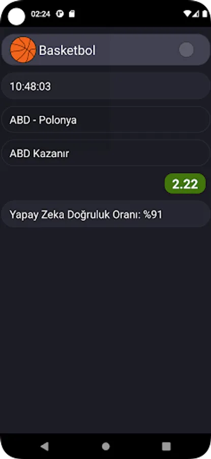 Artificial intelligence is a constantly evolving platform. So we developed an algorithm to predict the results of football and basketball matches. Artificial intelligence controls this algorithm. The system scans the match results with thousands of possibilities and offers you the possible results. You should definitely try it, it's a very useful app.
