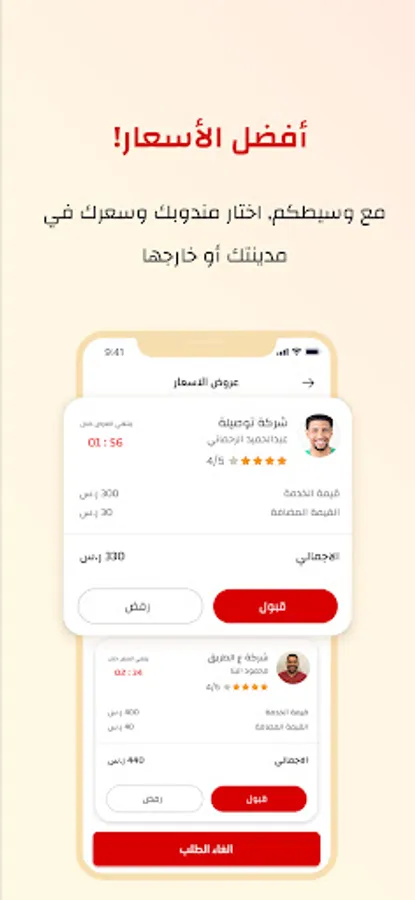 تطبيق وسيطكم يقوم بتوفير فرصة الباحثين عن مصدر دخل ولديهم مركبات نقل بجميع الأحجام. كما وأن التطبيق يوفر خدمة العملاء الذين سيكونون موجودين طوال الأسبوع لمساعدة العميل على تجربة أفضل.
