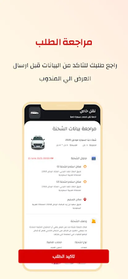 The app provides transportation and shipping services through authorized vehicles, aiming to find compatibility between the customer and the service provider to facilitate the transportation service with tracking. Through the app, you can transport and ship whatever you need from anywhere to anywhere, at your convenience. The app offers transportation services for construction materials, plumbing, electrical, animals, food items, furniture, and other authorized transportation within Saudi Arabia.