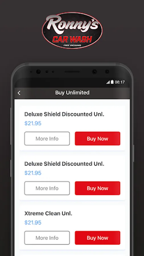 Download the Ronny’s Car Wash App for Exclusive offers & first time coupons. The app allows you to join/manage unlimited accounts, purchase washes online and send washes to family or friends. Please visit us or use your unlimited plan at any of our locations in Navarre, Tiger Point, Fort Walton, Crest View, and Gulf Breeze. We deliver a superior car wash experience at the best value possible. We hope to see you soon!