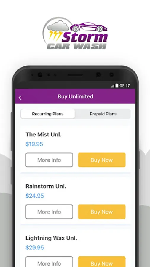 The Storm Car Wash App provides users the ability to purchase washes and memberships online, send washes as gifts, access exclusive offers and discounts, and manage their Unlimited membership account.