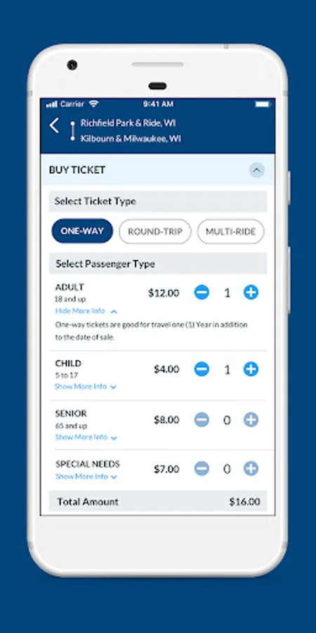 Washington County Commuter Express offers a convenient, stress free commute with our express deluxe motor-coach service operating weekdays from Washington County to Milwaukee County. Use our app to purchase your ticket or review bus schedules. Easily store your ticket and present it to the driver to scan upon boarding for a truly contactless experience. Save time at the stop and take the hassle out of travel by purchasing either single tickets or multi-ride tickets.