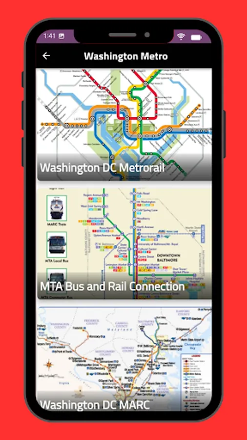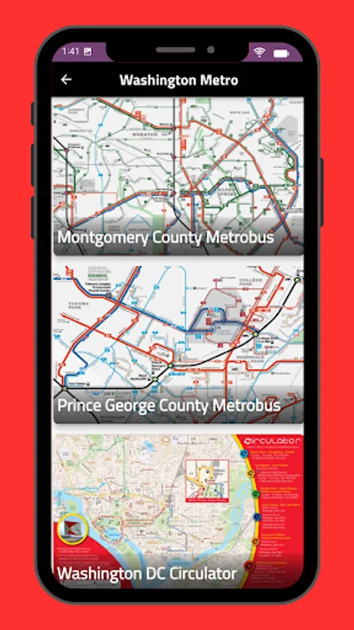 Includes a complete set of maps for the Washington, bus, metro, rail, rail, tram – basically all transit types – from the official sources.