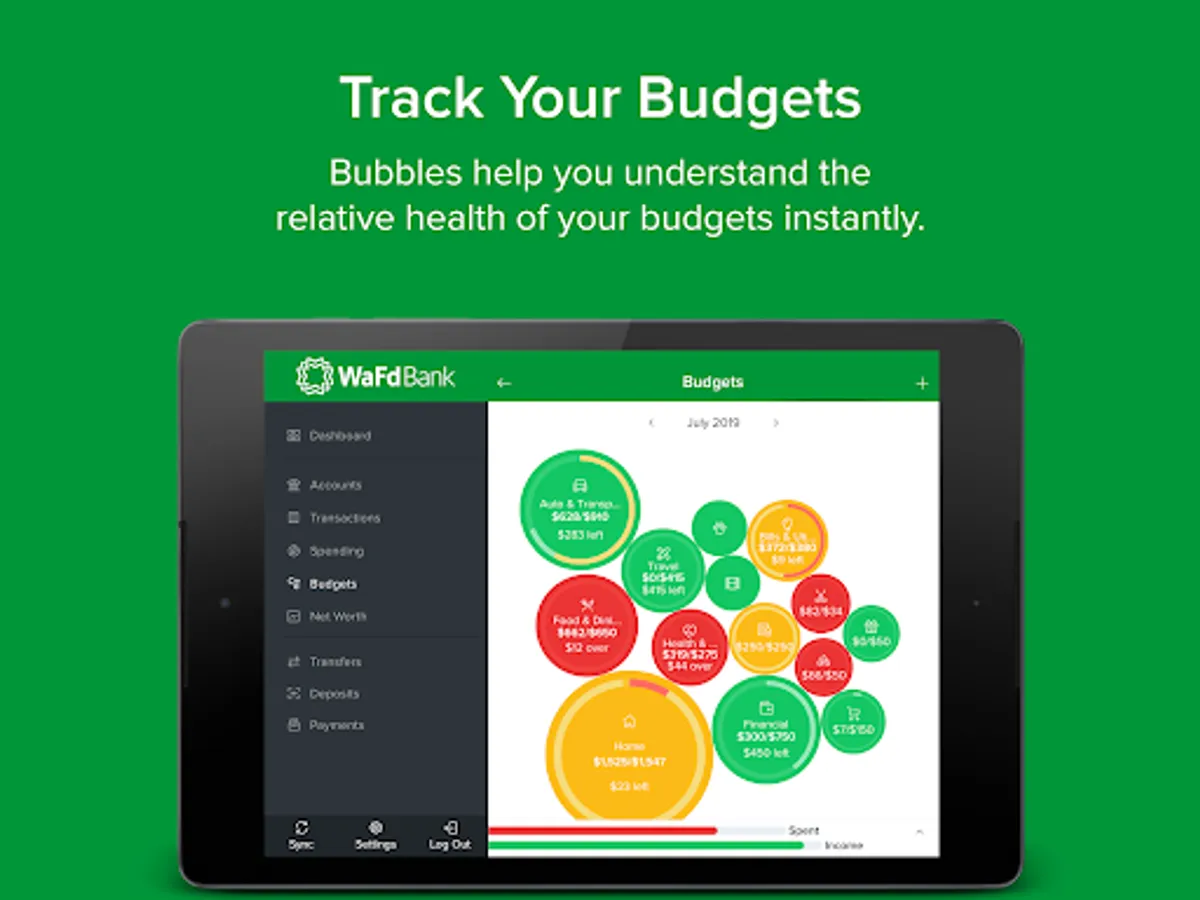 Experience award-winning mobile banking with WaFd Bank. These cutting-edge digital tools allow you to manage your finances however and wherever you want. The app gives you the ability to connect all of your financial accounts for a one-stop approach to managing your finances that doesn’t require constantly shifting between apps. WaFd Bank’s mobile app is powered by the industry’s most reliable and accurate transaction categorizing technology so that your spending is cleansed and organized quickly and easily.
