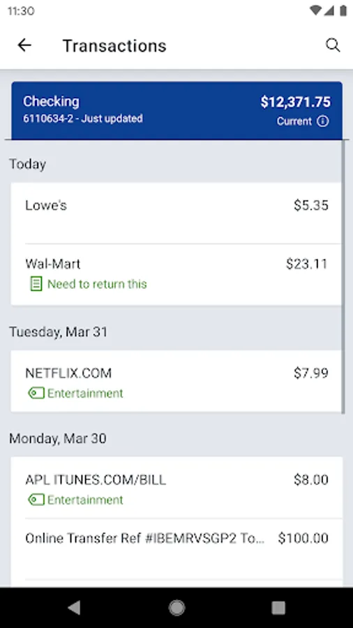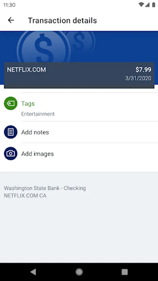 Add Tags, Notes, Images & Geo-Information: By enhancing transactions with custom tags, notes or photos of a receipt or check, you have the ability to stay organized and find exactly what you’re looking for when searching through your finances.