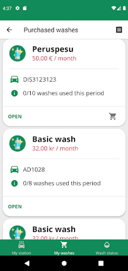 With the WashXL app, you can keep track of what is important to you regarding your car wash. You can buy a single wash or a subscription directly with your mobile phone. Using WashXL app is easy, just add your licence plate, buy a wash from your station and drive into the wash.