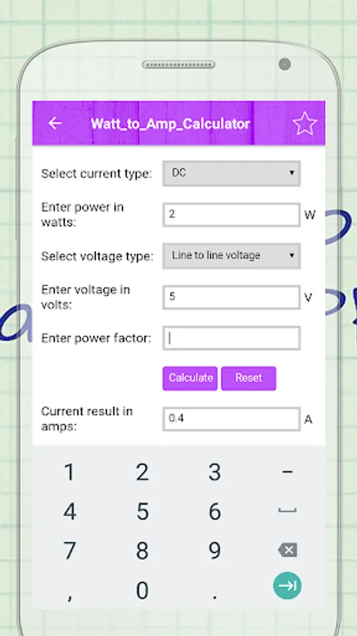 welcome to the Electrical: amp-watt convertor app, you can calculate Dc or AC-single / three phase watts and amps.