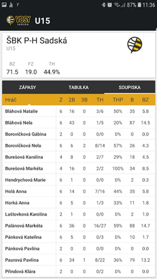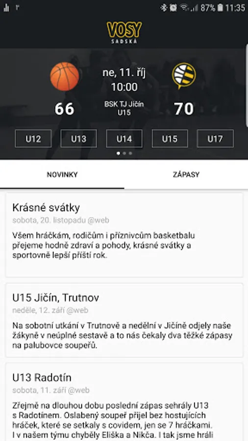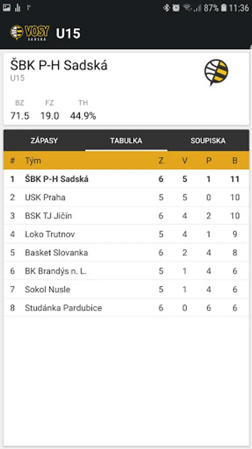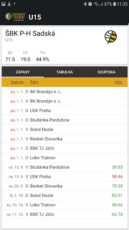 ŠBK Sadská - Sadské Vosy. Overview of news, matches and statistics of individual teams and players. Calendar of all upcoming matches. Notification of change of venue and time of individual matches.