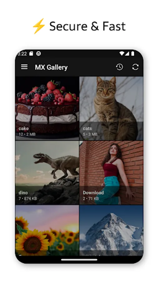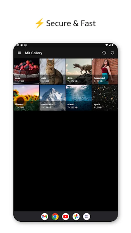 Gallery has the fastest speed performance on test with average load time for 2.4s to load across 30,000 media files. Our app is built to withstand heavy load and sort through hundreds of thousands of content in a few seconds
