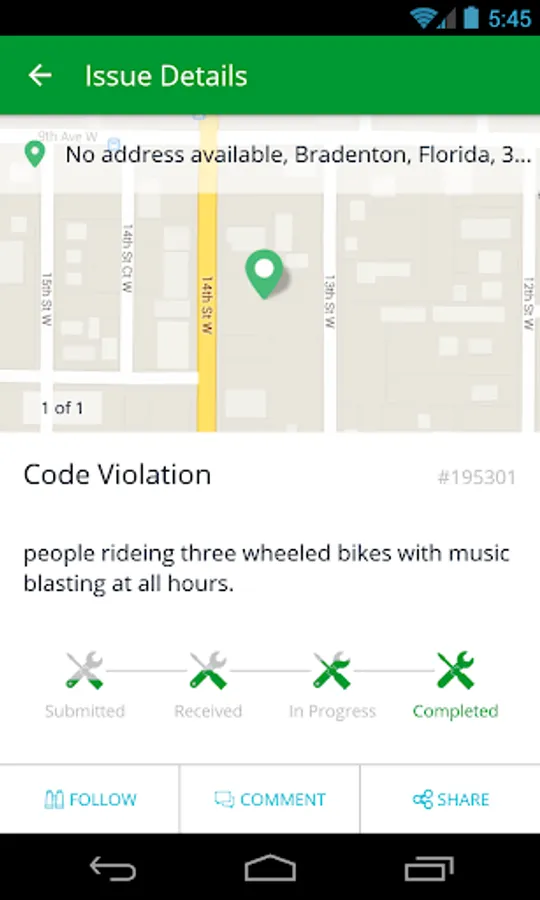 Bradenton PublicStuff allows service requests (potholes, noise complaints, dangerous conditions, etc) to be submitted directly to the your local government, where it will be instantly routed to the correct administrator in the appropriate department. This means your service requests will be responded to quickly and efficiently, and you'll be notified the instant they are resolved!