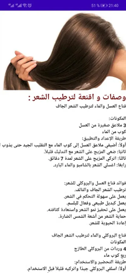 This application includes a bouquet of recipes that you need my lady in terms of beauty, health and care for them