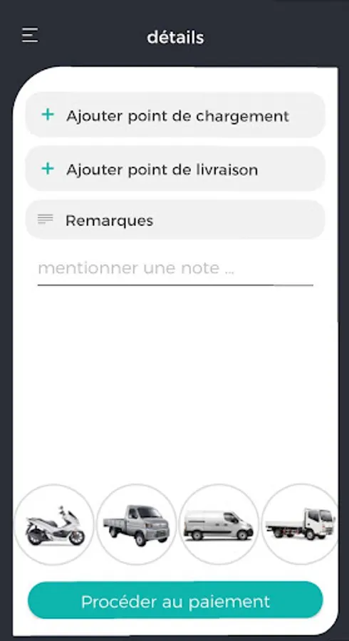 تطبيق وسيط يربط بين صاحب السلعة وناقل البضائع, من خلال هذا التطبيق يمكنك طلب وسيلة النقل في اقل من دقيقة مع تحديد مكان الشحن والوجهة, نوع وسيلة النقل, الحمولة, المسافة بالتحديد الجيوغرافي وتفاصيل اخرى.