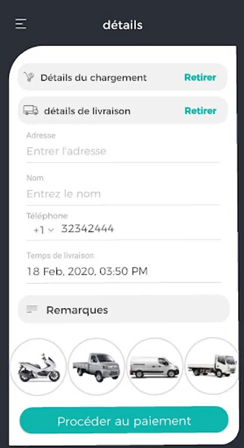 لحجز وسيلة النقل يقوم الزبون بتحديد وقت ومكان الشحن والوجهة, نوع وسيلة النقل, الحمولة ، المسافة بالتحديد الجيوغ عندها يمكن للزبون قبول أو رفض الطلب. كما يمكن للزبون الاتصال مباشرة بالسائق بعد تأكيد الحجز للمزيد من التفاصيل