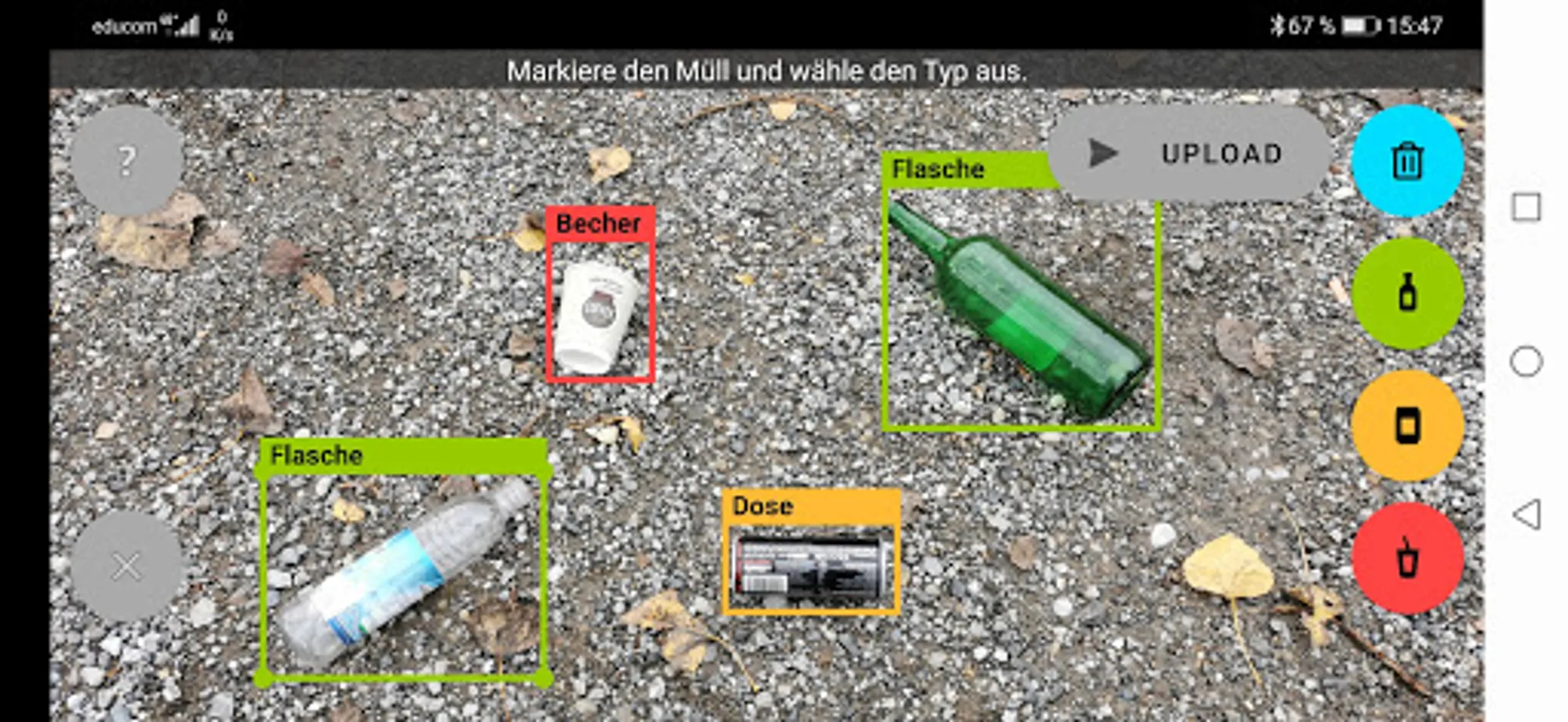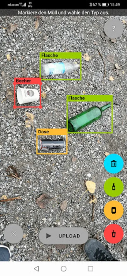 Artificial intelligence has experienced a rapid upswing in recent years. The neural network "YOLOv4" has shown that optical image recognition by means of AI is technically feasible. In order to train a system for garbage detection, a large number of sample images is required. In order to collect as many sample image as possible and to train our algorithm, this app was developed.