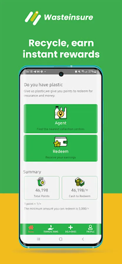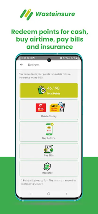 You give us plastic waste, we give you points which you can redeem for mobile money, insurance, or send out to a bank account.
