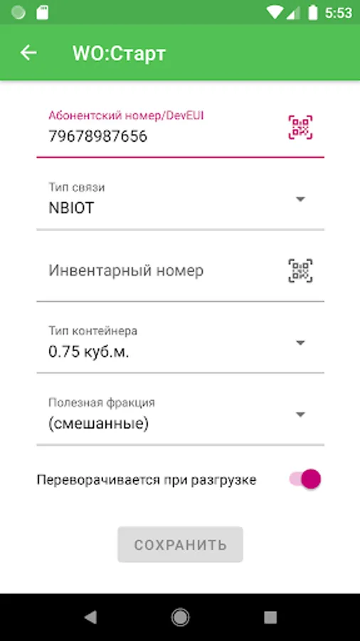Application for initialization of the Wasteout and MSW accumulation meter. It is used when mounting devices in containers of various types.