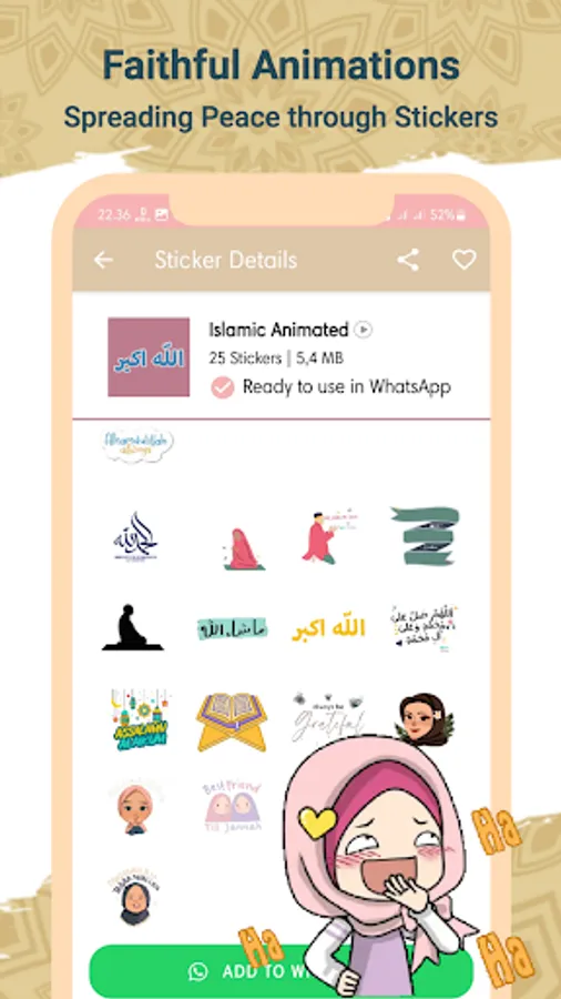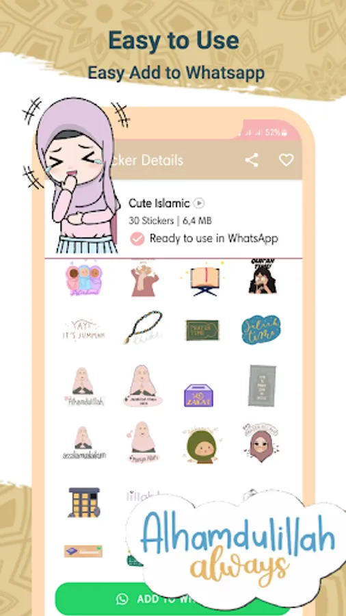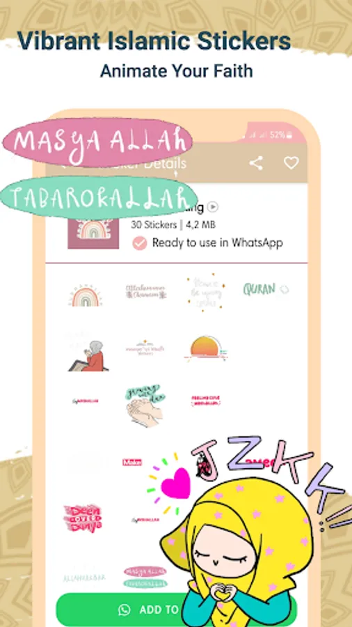Using the app is effortless and intuitive. After downloading WASticker - Animated Islamic from your device, you can easily access the sticker library within WhatsApp. Browse through the vast selection of stickers, organized into categories for convenient navigation. Once you find the perfect sticker to express your thoughts or feelings, simply tap it to send it instantly within your chat.