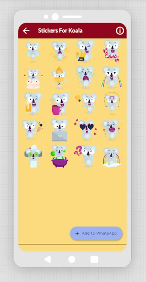 Introducing WASticker - Stickers for Koala, your ultimate sticker companion for WhatsApp! Express yourself in a whole new way with our delightful collection of Koala-themed stickers. Please note that this app is not an official WhatsApp product; it's an unofficial app created specifically to enhance your messaging experience with adorable Koala stickers.