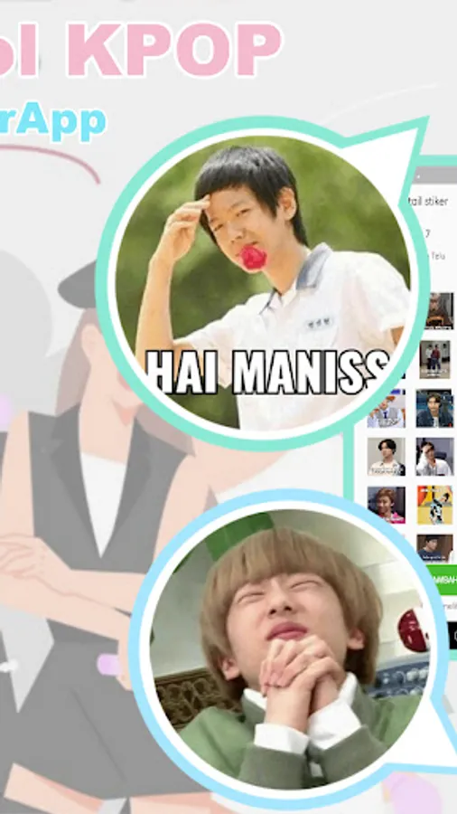 Korean Idol Kpop WAStickerApps is not supported or affiliated with WhatsApp Inc. Most of the images created by users. If you believe that the content violates your copyright, please contact us.