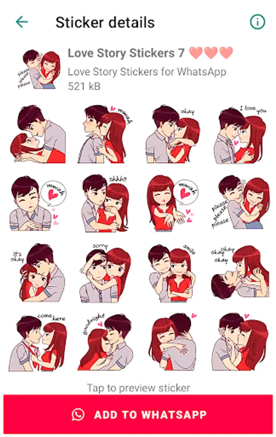 Download love stickers for WhatsApp and romantic sexy love emoji stickers for free.