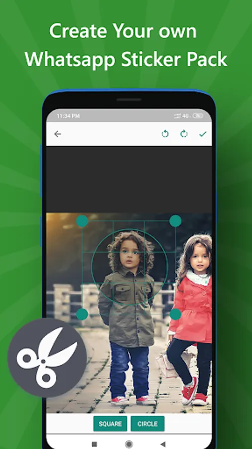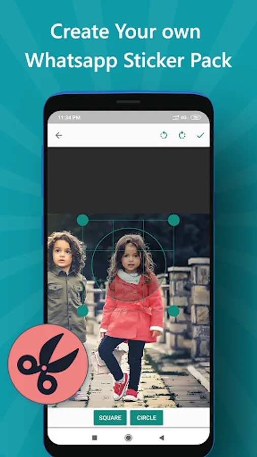 Additional Feature: Grab a photo from gallery or camera & crop with round/ square insta shape and create your own WAsticker pack.