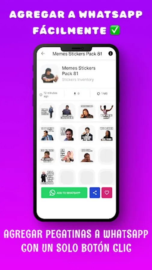 ¿Eres un entusiasta de los memes? ¡Entonces estás de suerte! Nuestra app presume de una amplia colección de stickers de memes actualizados, desde los clásicos hasta las últimas tendencias. Agregar estos divertidos stickers a tus chats de WhatsApp es pan comido. ¡Prepárate para llevar el humor de tus conversaciones a otro nivel! 😂📲🤣