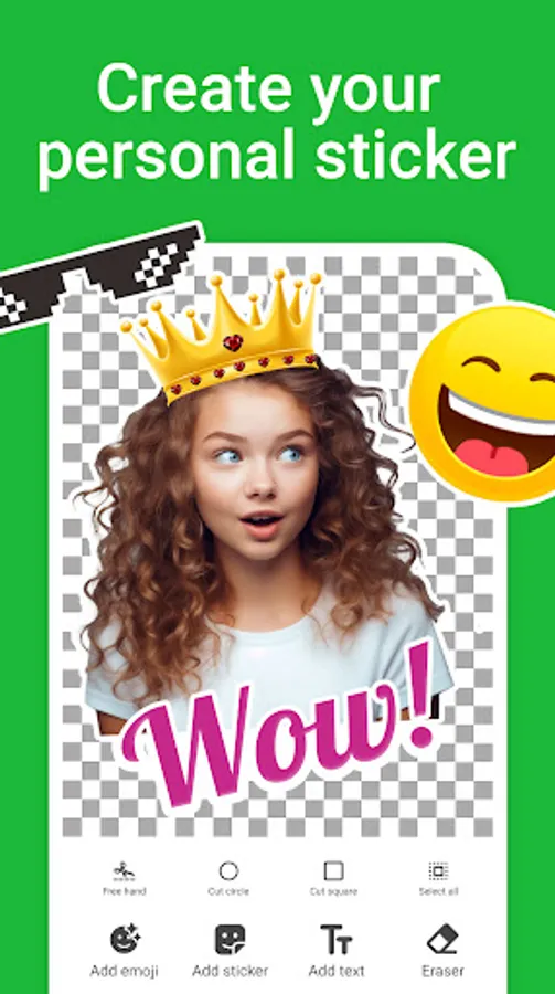 Create stickers easily with this sticker maker. Delete the background of the picture 📷, add personal text 📝 , emojis 😊, stickers and more.