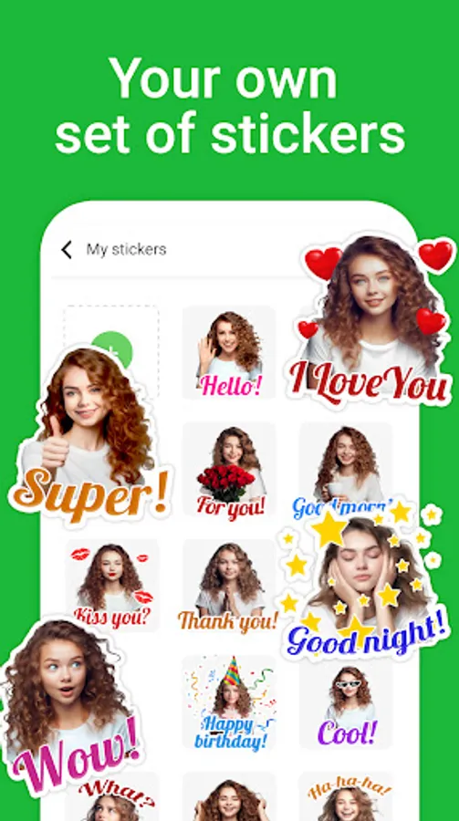 Share your own stickers with your friends and surprise them with personalized stickers for WhatsApp.