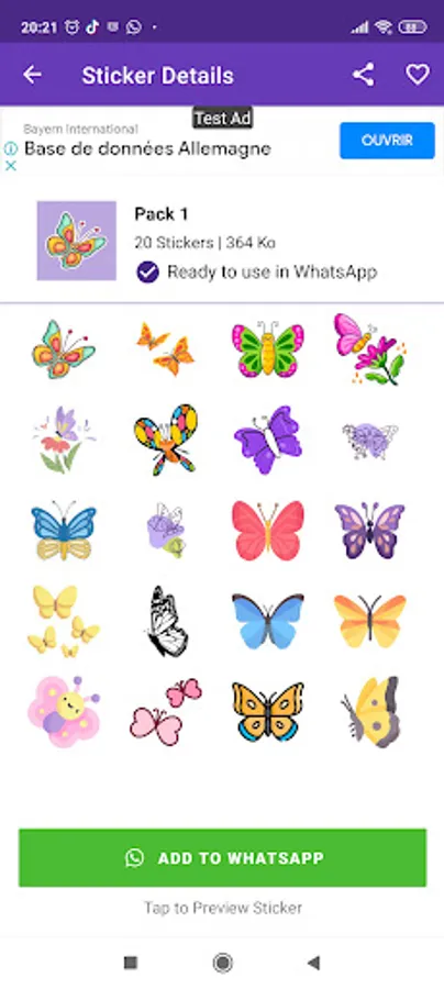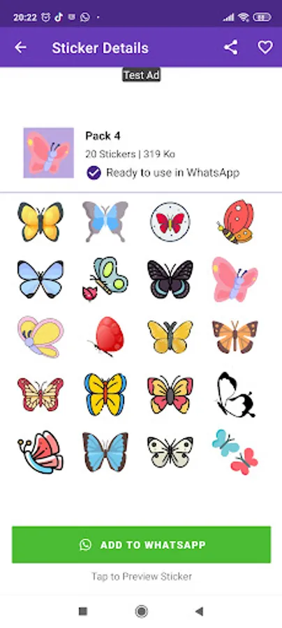 Butterfly Stickers WASticker has some ads, and we want you to know dear user that developing Android apps takes a lot of time and effort and we provided our apps for free, so the only way we used to earn money. money is putting ads in our apps.