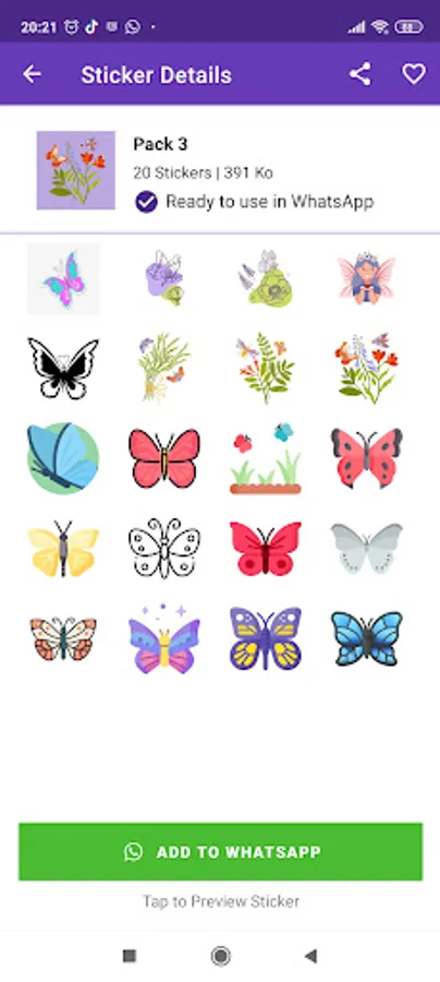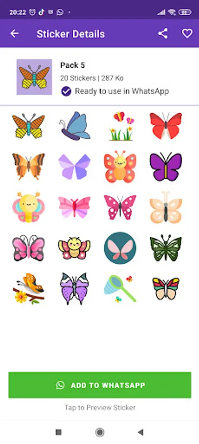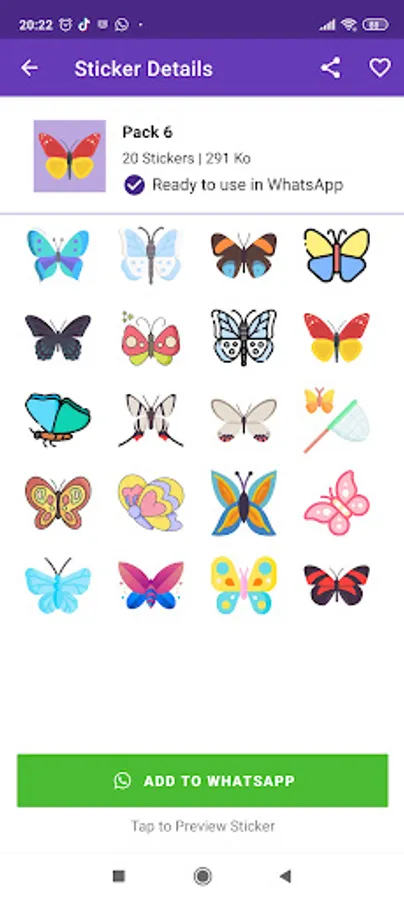 Beautiful butterfly stickers for Whatsapp. The application includes 24 cool sticker packs for WhatsApp