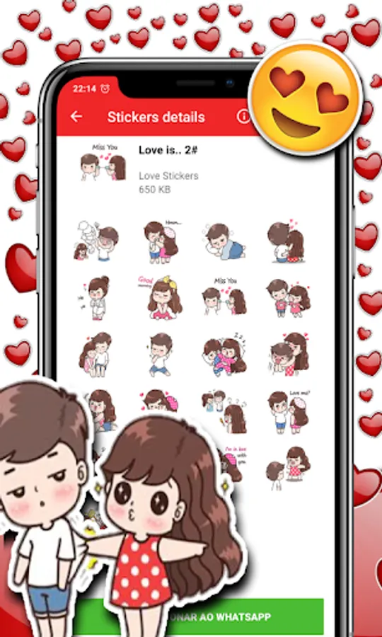 This app has countless π love stickers - WAStickerApps π, aimed at those who want to send messages with romantic stickers for whatsapp where are your friends and the person you love! π₯° The app is constantly updated βπββοΈ, we added new Stickers love for WhatsApp. π
