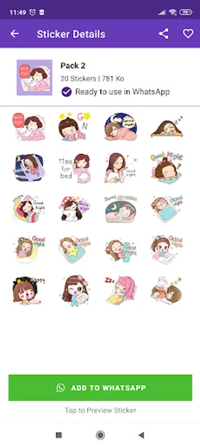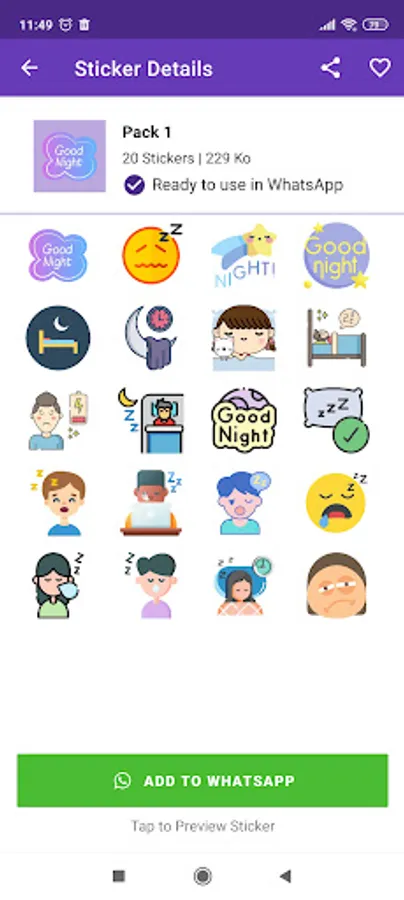 WAStickerapp Goodnight stickers collection for good night like good night emojis, moon stickers, sleeping baby stickers, girl sleeping stickers etc.