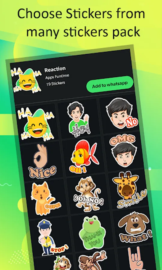 WAStickerApps - Stickers for Whatsapp - All In One , No Need for multiple Apps to download pack , Select from more than 25+ packs with more than 400+ WAStickers Pack for whats app. There Are Wide Range of Stickers categories like Love Stickers,Funny Stickers, Reaction Stickers, Emojis Stickers, Daily Chat Stickers Etc. So Create Your Personal Stickers and Share Your Stickers