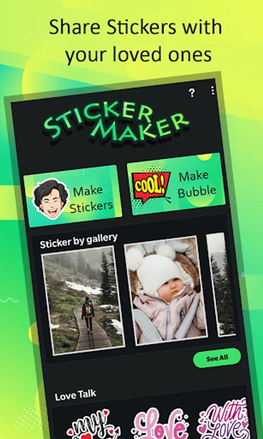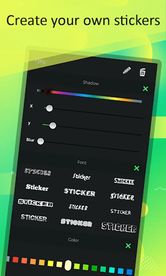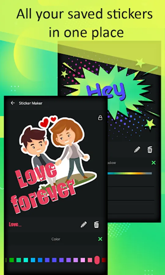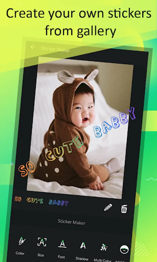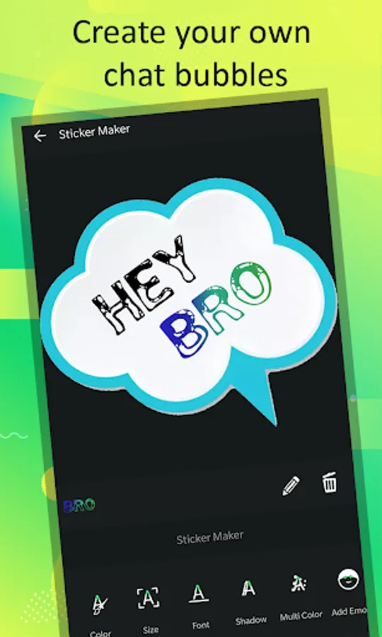 Write text on Sticker in your own language to make chat bubble. You can also create you own Sticker with text and photo editor within the app.
