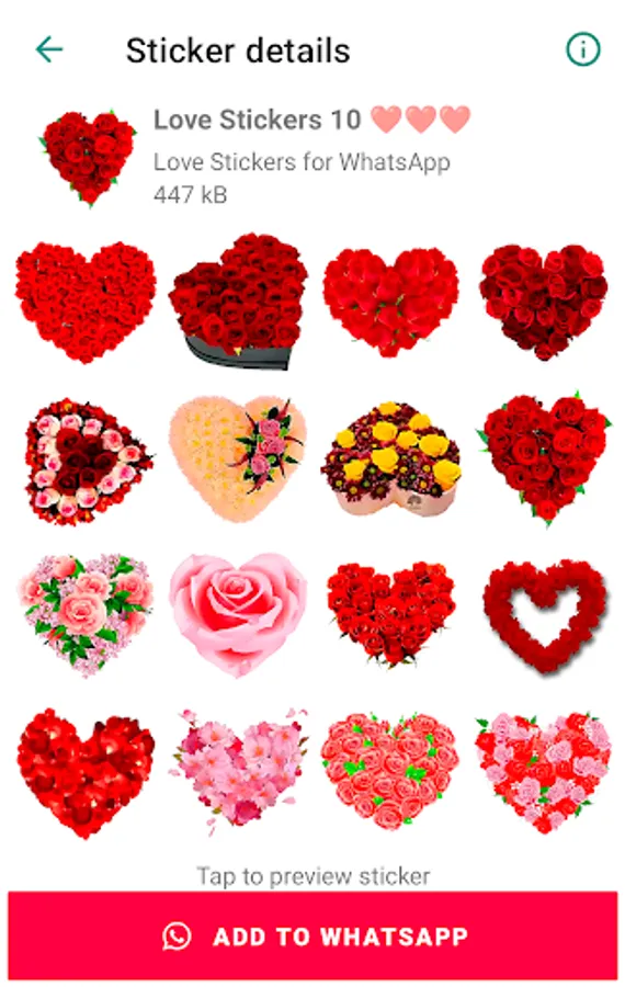 Before using the WASticker love stickers app, please update to the latest version to be sure WhatsApp will support WASticker love stickers or WASticker romantic stickers.