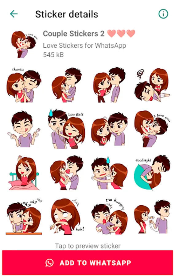 Download love stickers for WhatsApp and best romantic stickers and more new stickers and express yourself with tons of cute stickers now!