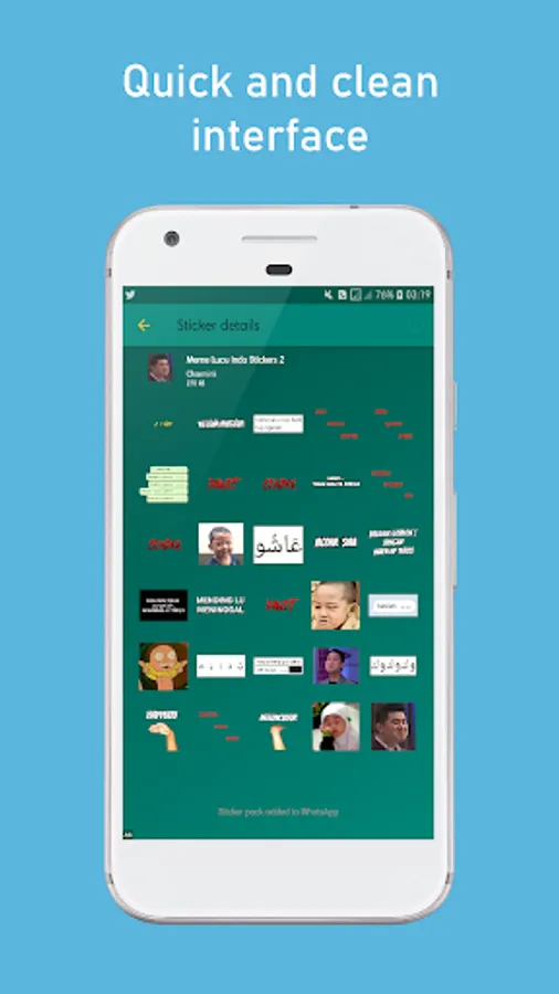 - Sharing options: You can also share Meme Funny Indo WAStickerApps with your friends via WhatsApp and download directly to the play store from stickers.
