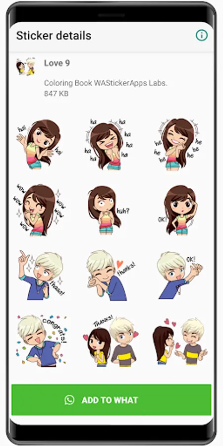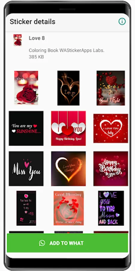 Tap on 'ADD TO WASticker' on romantic sticker packs