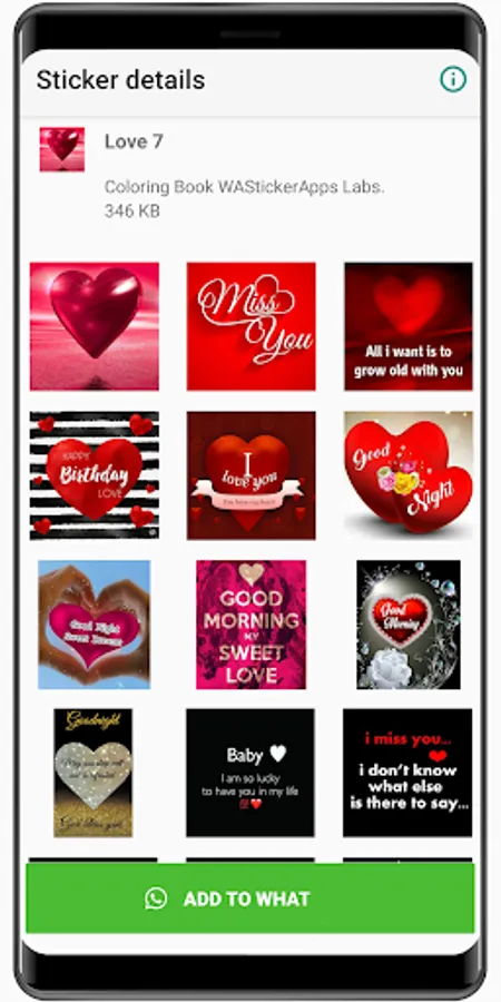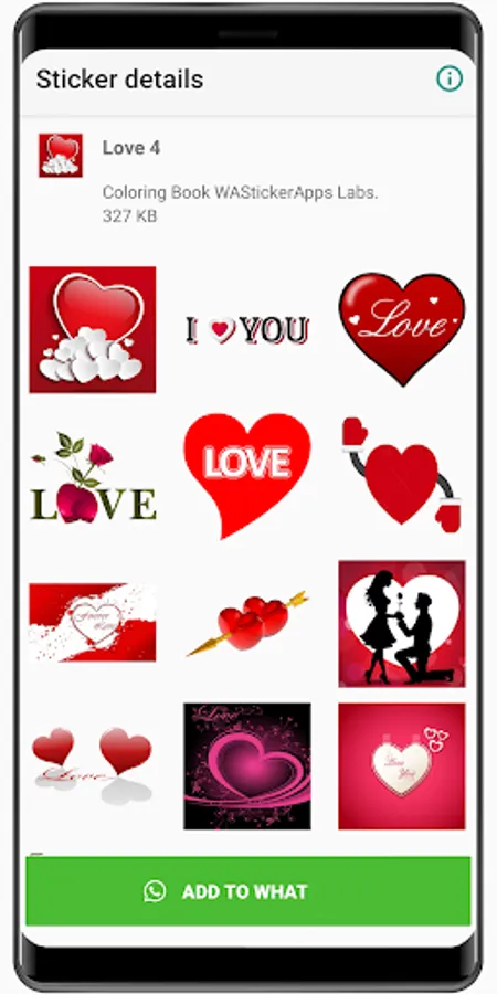 Tap on 'ADD TO WASticker' on romantic sticker packs
