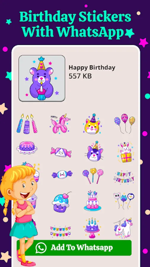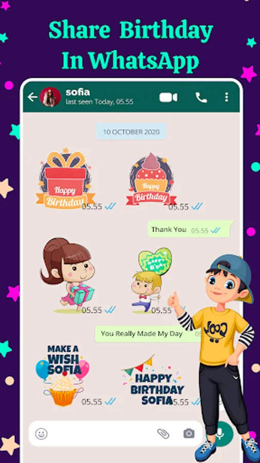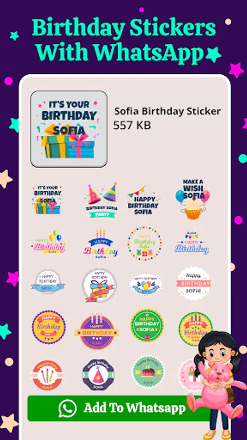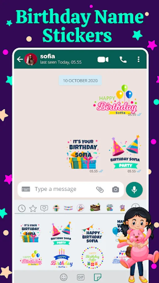 To make customized and memorable birthday stiker to put a smile on children face. Also send birthday steker to mother and father to melt their heart. Enjoy all happy birthday sticker features in one app like birthday stickers with name,birthday photo stiker, birthday emojis, birthday image sticker, bday sticker. Birthday stikers with name creates customized name birthday stickers.