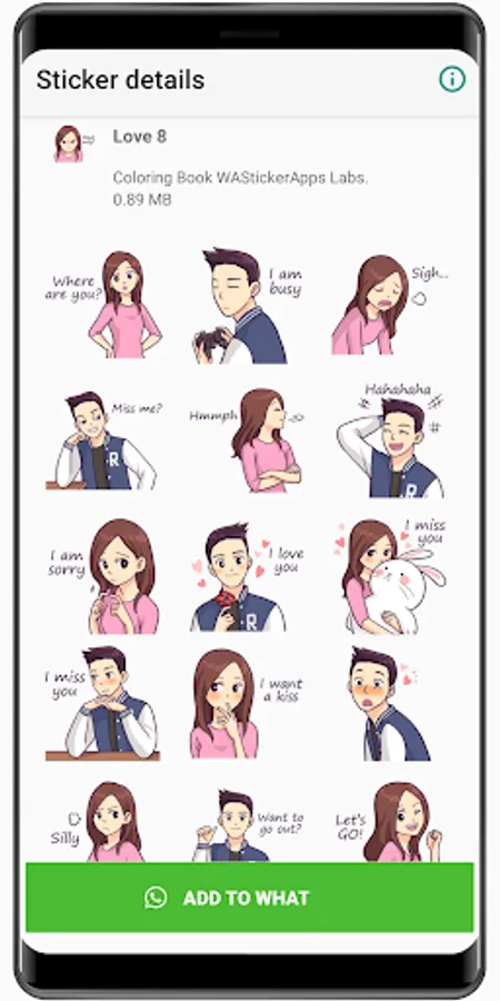 Tap on 'ADD TO WASticker' on romantic sticker packs