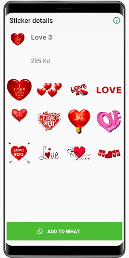 Tap on 'ADD TO WASticker' on romantic sticker packs