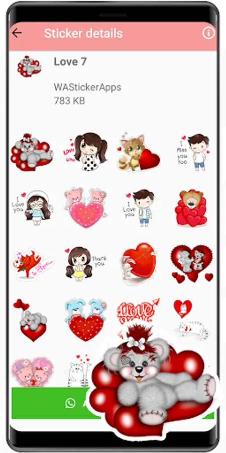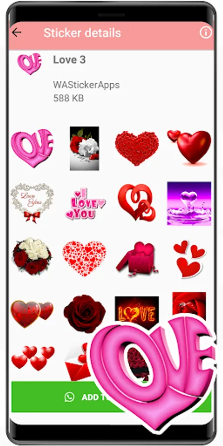 Download and open WAStickerApps romantic stickers