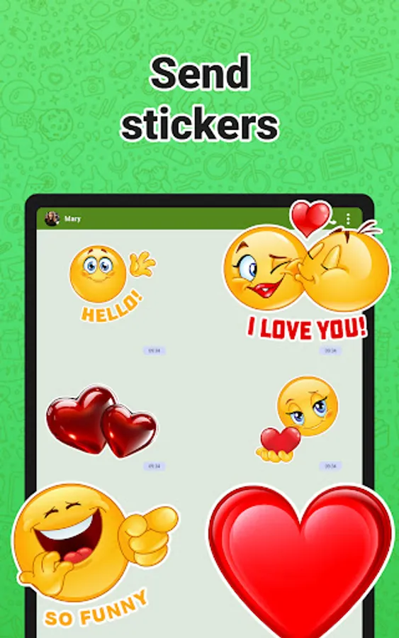 Our advantage is that not only static stickers for whatsapp are waiting for you, but also animated GIFs available for many social networks, such as viber, facebook, messenger, twitter, Instagram, etc. All sets are divided into relevant categories that meet any preferences. Now you can express your feelings and emotions with animated emoji and even more. Original emoticons will beautify your messages.